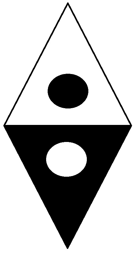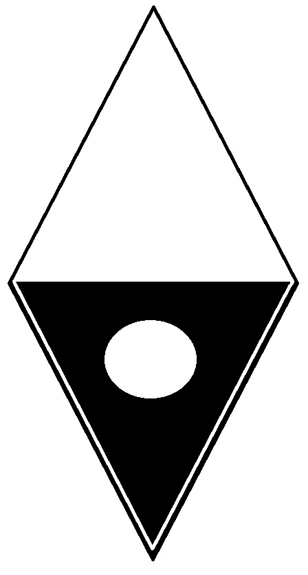 ein schwarzes Feld mit einem weißem Punkt. Die Raute symbolisiert dabei die